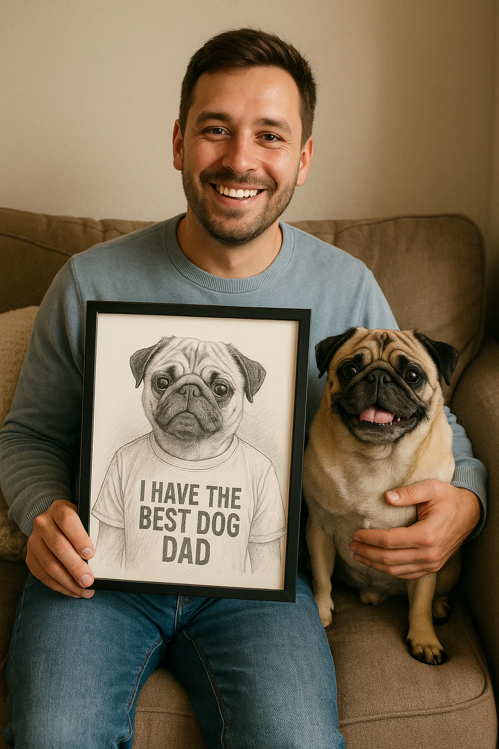 I Have the Best Dog Dad" Custom Pencil-Style Portrait – Now Only £7!